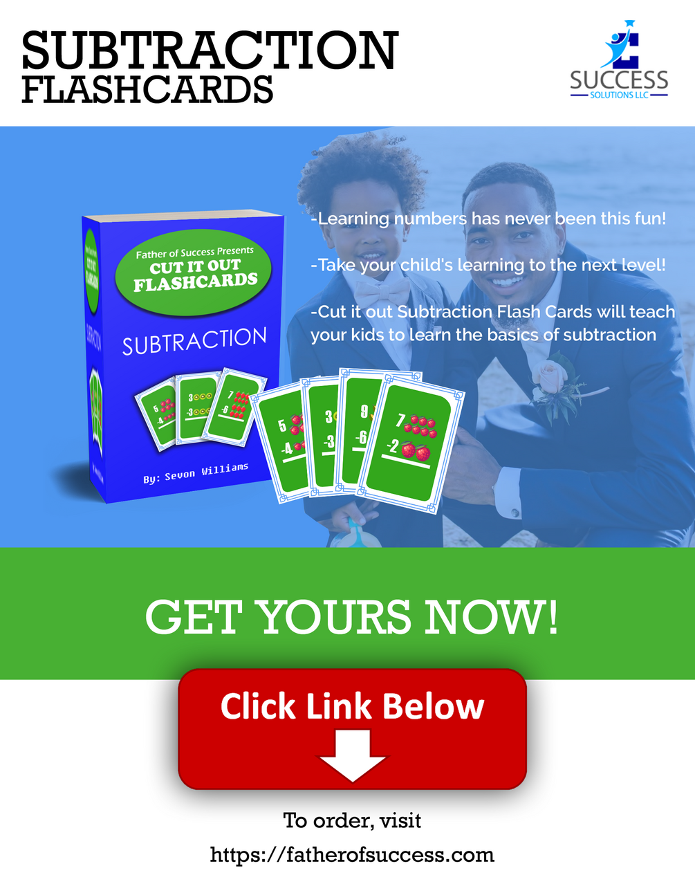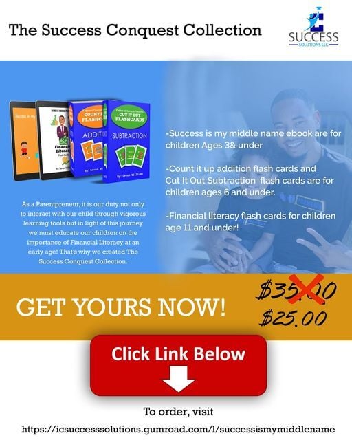 Success is my Middle Name ebook for children ages 3 & under. Count it up Addition flash cards are for children ages 6 and under. Father of Success Financial Literacy learning cards for preteens. The most inspiring thing a parent could ever do is set their child up for success by actively engaging and teaching the necessary tools to a brighter future. 30% off Discount code winter for the next 20 customers